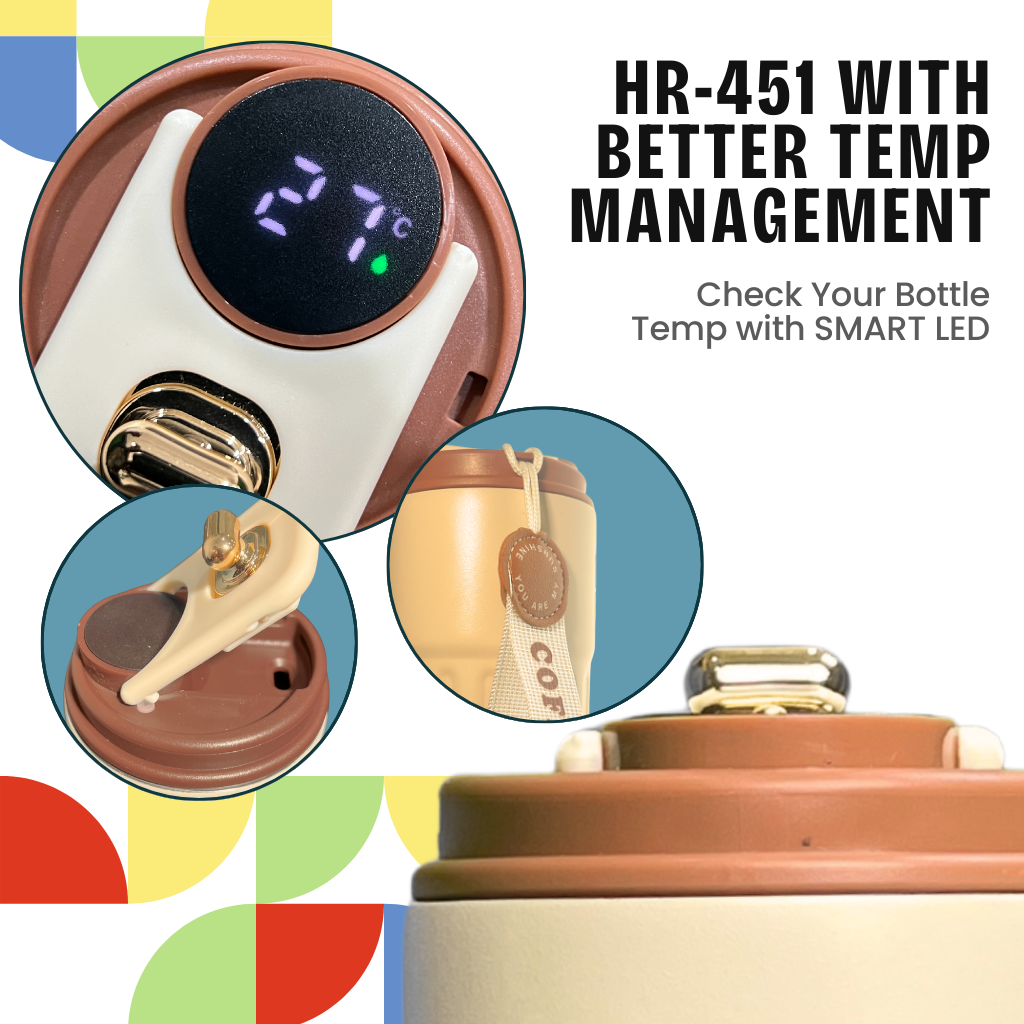 Tumbler 450ml ini menggabungkan desain minimalis dan elegan dengan fungsionalitas tinggi. Cara minumnya praktis, langsung dari botol, sementara tutupnya sudah dilengkapi layar pintar yang menampilkan temperatur air di dalamnya, sehingga kamu bisa selalu tahu seberapa panas atau dingin minumanmu. Dilengkapi juga strap praktis, tumbler ini nyaman dibawa kemana saja, cocok untuk aktivitas harian atau jalan-jalan.
