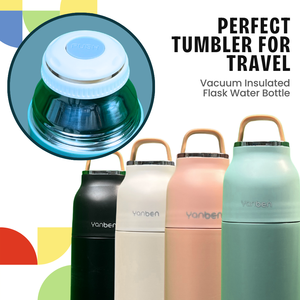 Tetap praktis dan stylish di mana saja dengan tumbler & termos travel! Dilengkapi handle di atas yang nyaman digenggam, kamu bisa membawanya kemana pun tanpa ribet. Saat digunakan sebagai tumbler, minum langsung dari botol dengan mudah, membuat hidrasi harianmu lebih simpel, cepat, dan tetap gaya.